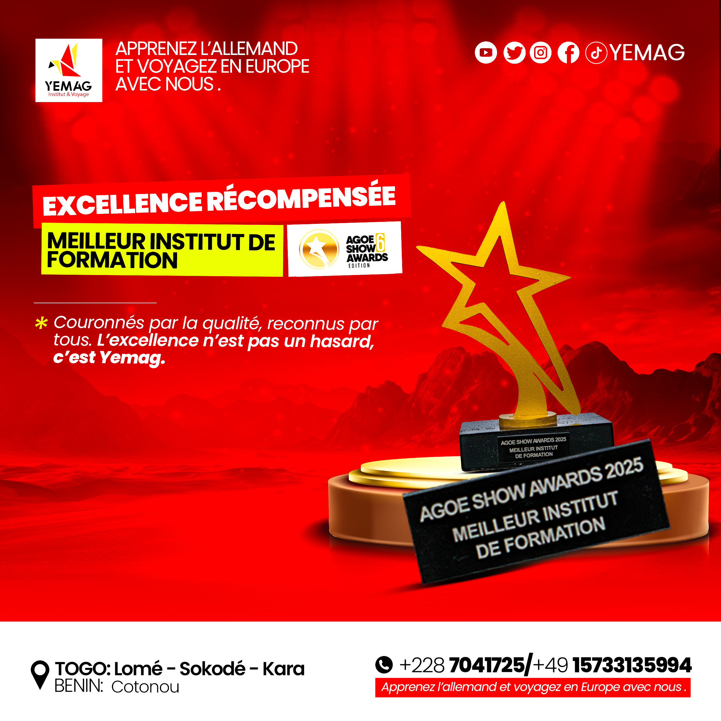 Actualités Sacré « Meilleur Institut de Formation » aux Agoè Show Awards 2025 Lire » 1. septembre 2025