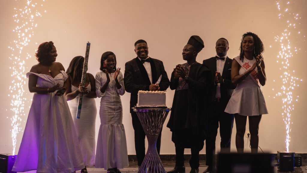 Un moment symbolique de la soirée a été la coupure du gâteau, effectuée par le PDG, Coach Francis MOVARA, marquant officiellement les 5 années de parcours de YEMAG Institut.
